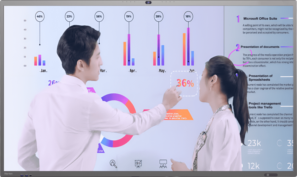 In addition to being an interactive whiteboard and having easy access to documents, you also get applications for seamless collaboration and communication. These applications include but are not limited to the Microsoft Office suite, allowing for direct editing and presentation of documents, sheets, and slides. Alongside documentation editing tools, you can also find project management tools such as Trello and Microsoft Project, dedicated to team management tasks for managing tasks and timelines effectively. All of these collectively enhance the collaboration of tasks seamlessly and make collaboration streamlined.